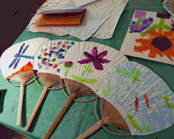| たくさん色を入れてみたよ | 息を吹いて動かそう! | 和紙は素早く |